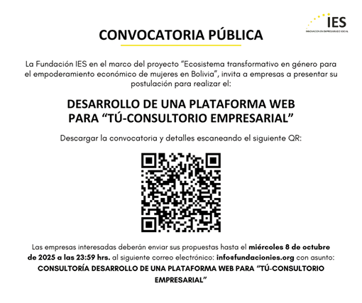 La Fundación IES en el marco del proyecto "Ecosistema transformativo en género para el empoderamiento económico de mujeres en Bolivia" (TEA WEEB), invita a empresas a presentar su postulación.