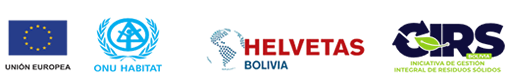 El Proyecto “Iniciativa de Gestión Integral de Residuos Sólidos a través de la digitalización, innovación y proyectos en ciudades piloto para una transición justa” implementado por ONU Hábitat y que tiene como socio ejecutor a HELVETAS Swiss Intercooperation - Bolivia; invita a todas las empresas interesadas, legalmente establecidas en Bolivia a presentarse a la siguiente licitación de obras: